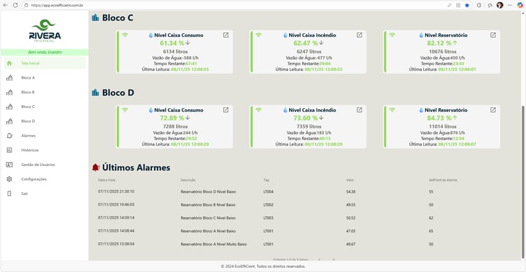 Monitoramento 24/7 com controle inteligente da água